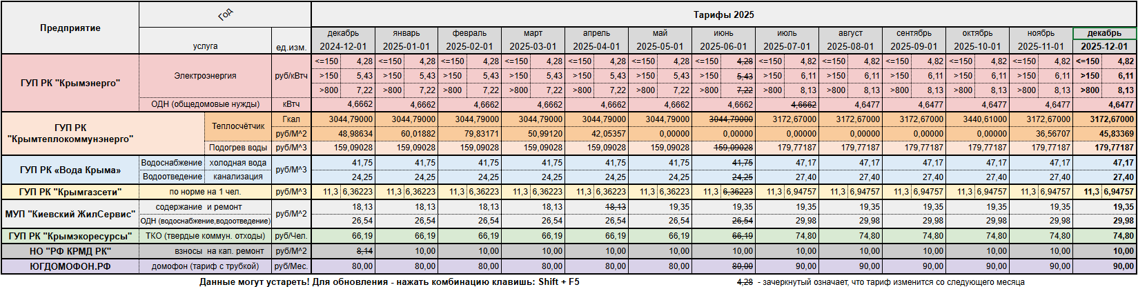 Тарифы 2025