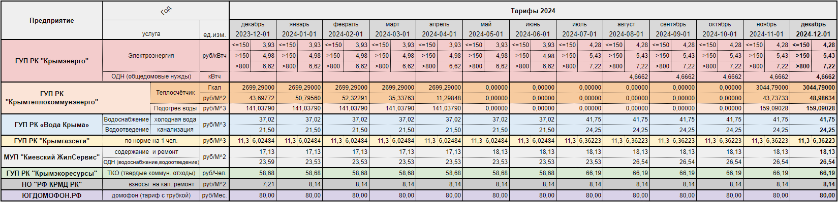 Тарифы 2024